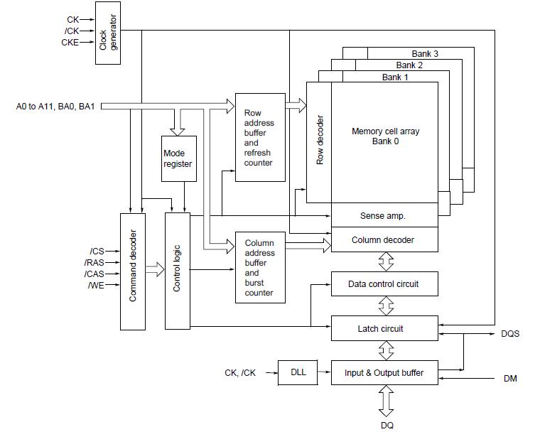 EDD5116AGTA-5B-E features: (1)×32 organization; (2)Double-data-rate architecture; two data transfers per clock cycle; (3)The high-speed data transfer is realized by the 2 bits prefetch pipelined architecture; (4)Bi-directional data strobe (DQS) is transmitted/received with data for capturing data at the receiver; (5)Data inputs, outputs, and DM are synchronized with DQS; (6)DQS is edge-aligned with data for READs; centeraligned with data for WRITEs; (7)Differential clock inputs (CK and /CK); (8)DLL aligns DQ and DQS transitions with CK transitions Commands entered on each positive CK edge; data and data mask referenced to both edges of DQS; (9)Data mask (DM) for write data.