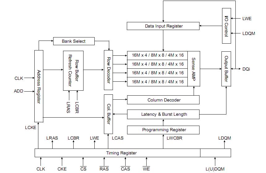 K4H511638F-LCCC features: (1)JEDEC standard 3.3V power supply ; (2)LVTTL compatible with multiplexed address; (3)Four banks operation ; (4)MRS cycle with address key programs: CAS latency (2 & 3), Burst length (1, 2, 4, 8 & Full page), Burst type (Sequential & Interleave); (5)All inputs are sampled at the positive going edge of the system clock; (6)Burst read single-bit write operation; (7)DQM (x4,x8) & L(U)DQM (x16) for masking; (8)Auto & self refresh; (9)64ms refresh period (8K Cycle); (10)Lead-Free & Halogen-Free Package; (11)RoHS compliant.