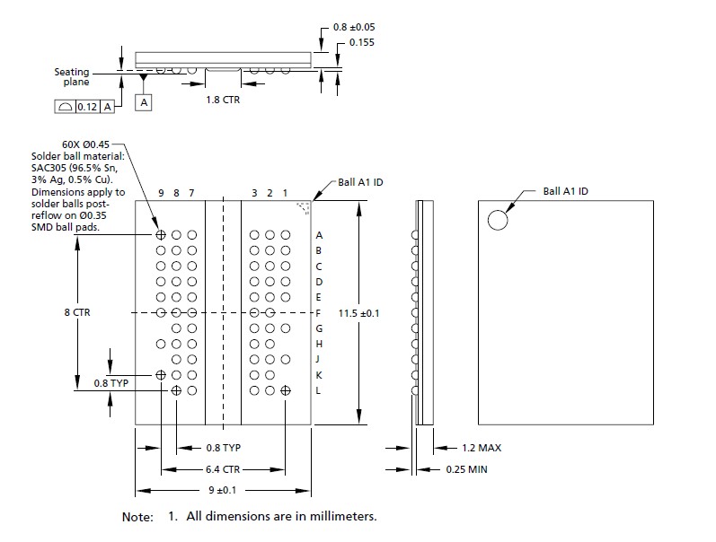 MT47H128M16HG-3IT features: (1)VDD = 1.8V +/-0.1V, VDDQ = 1.8V+/-0.1V; (2)JEDEC-standard 1.8V I/O (SSTL_18-compatible); (3)Differential data strobe (DQS, DQS#) option; (4)4n-bit prefetch architecture; (5)Duplicate output strobe (RDQS) option for x8; (6)DLL to align DQ and DQS transitions with CK; (7)8 internal banks for concurrent operation; (8)Programmable CAS latency (CL); (9)Posted CAS additive latency (AL); (10)WRITE latency = READ latency - 1 tCK; (11)Programmable burst lengths: 4 or 8; (12)Adjustable data-output drive strength; (13)64ms, 8192-cycle refresh; (14)On-die termination (ODT); (15)Industrial temperature (IT) option; (16)RoHS-compliant; (17)Supports JEDEC clock jitter specification.