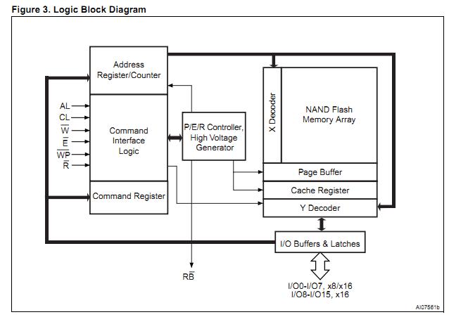 The NAND1GW3B2C2A6 is a non-volatile Flash memory that uses NAND cell technology. The NAND1GW3B2C2A6 ranges from 128Mbits to 1Gbit and operate with either a 1.8V or 3V voltage supply. The size of a Page is either 528 Bytes (512 + 16 spare) or 264 Words (256 + 8 spare) depending on whether the NAND1GW3B2C2A6 has a x8 or x16 bus width. The address lines are multiplexed with the Data In- put/Output signals on a multiplexed x8 or x16 In-put/Output bus. This interface reduces the pin count and makes it possible to migrate to other densities without changing the footprint.
