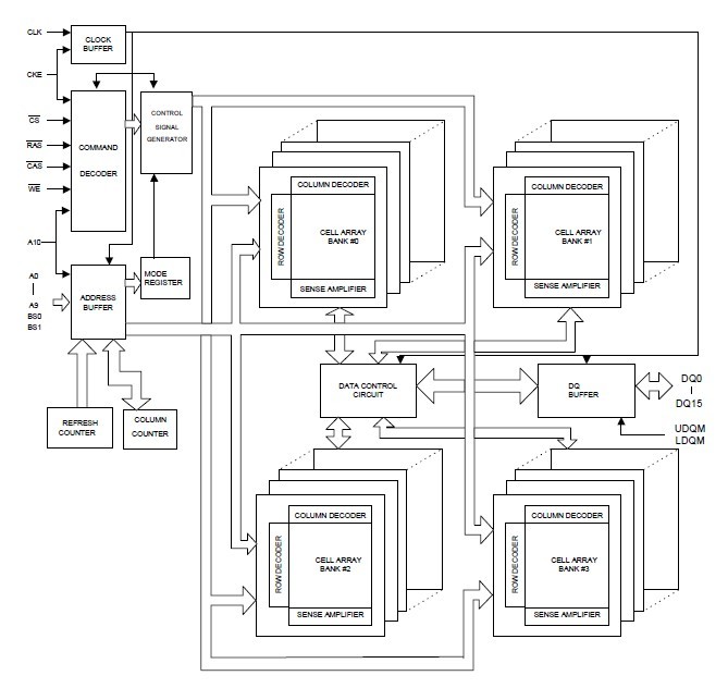 The W9864GJH-6 is a high-speed synchronous dynamic random access memory (SDRAM), organized as 1M words × 4 banks × 16 bits. Using pipelined architecture and 0.175 μm process technology, the W9864GJH-6 delivers a data bandwidth of up to 286M bytes per second (-7).